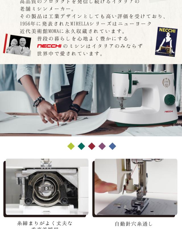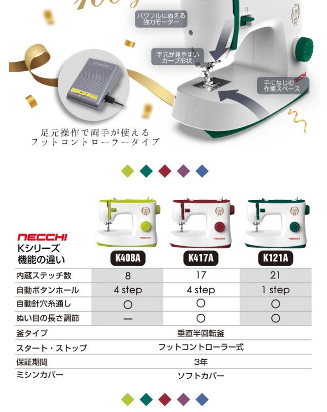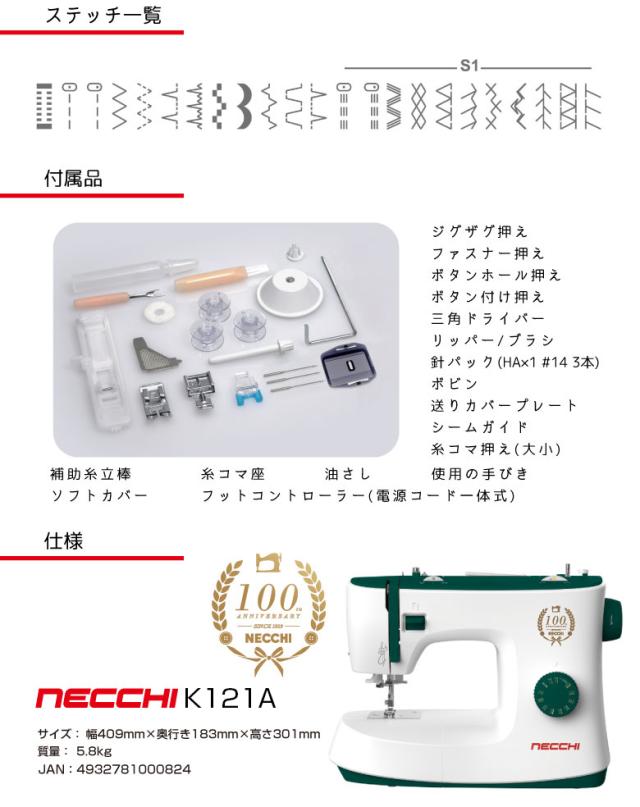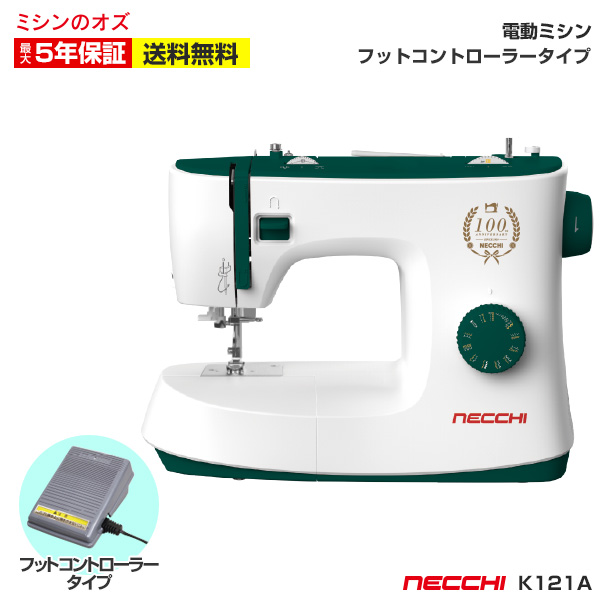 NECCHI(ネッキ) フットコントローラー付 電動ミシン K121A K-121A ミシン 本体 おしゃれ かわいい イタリア ネッチ