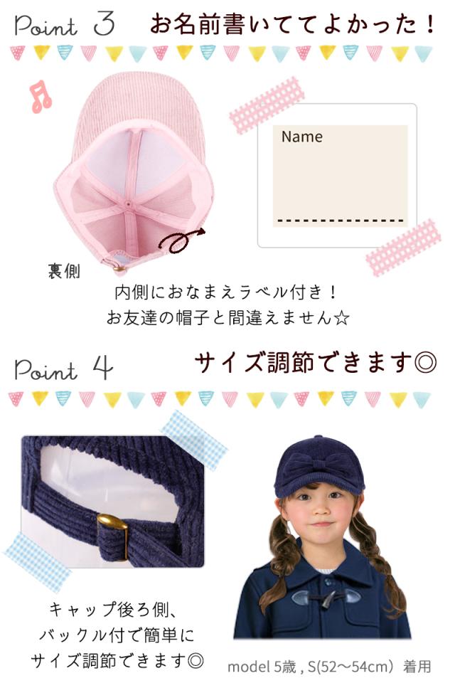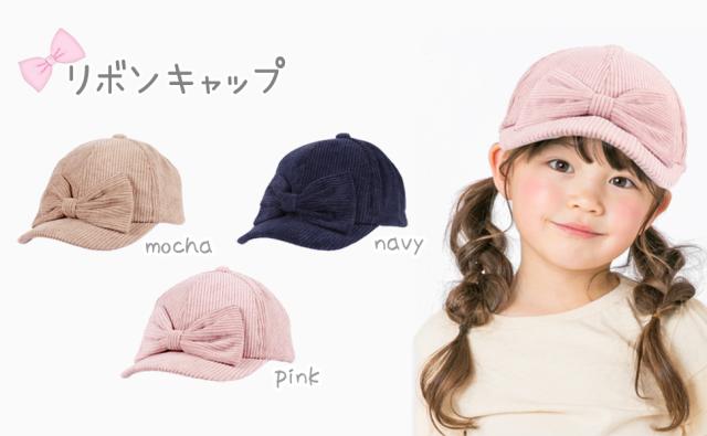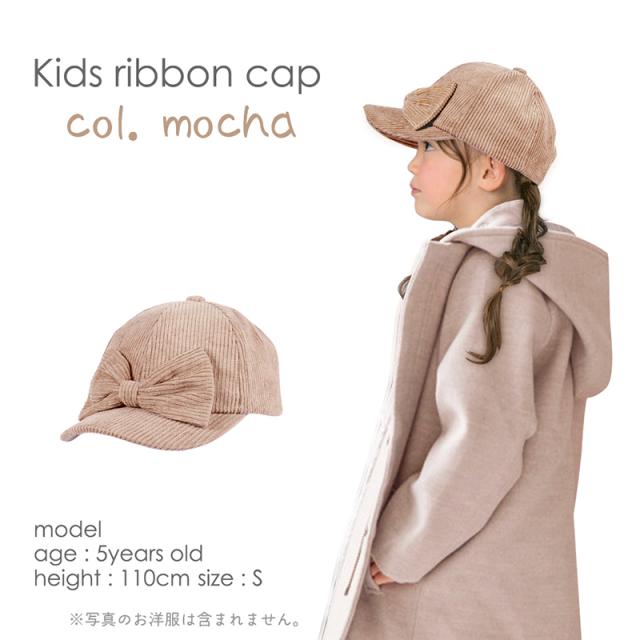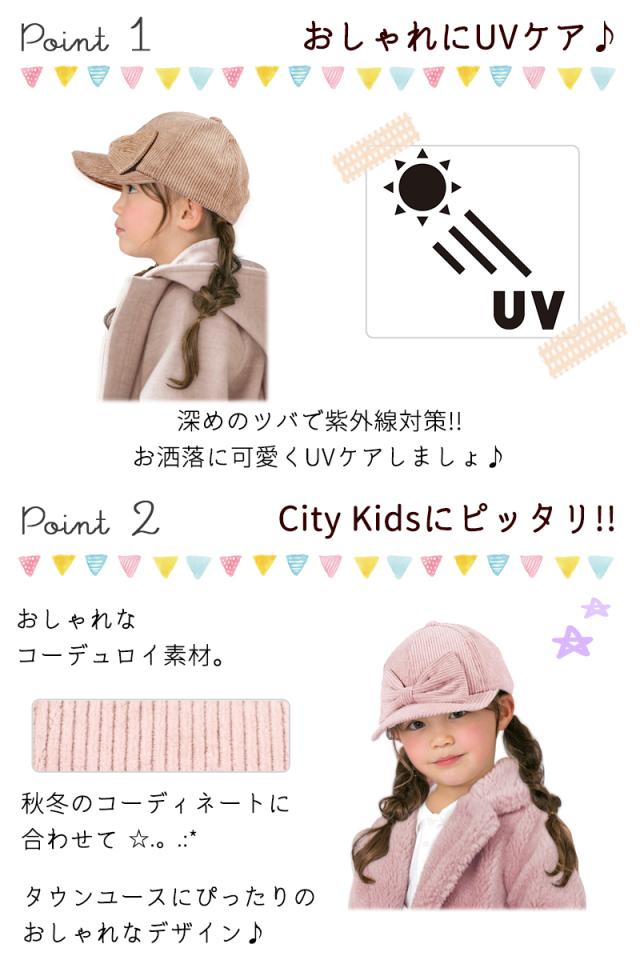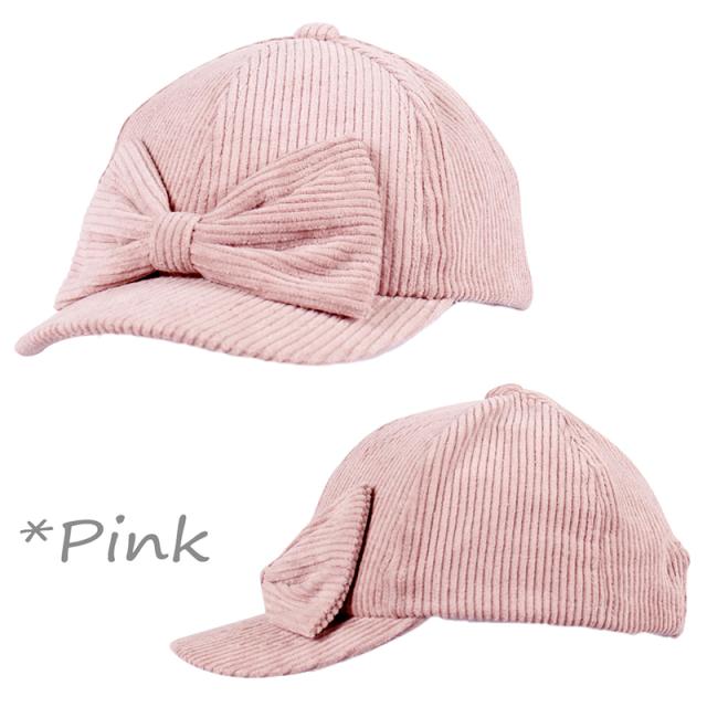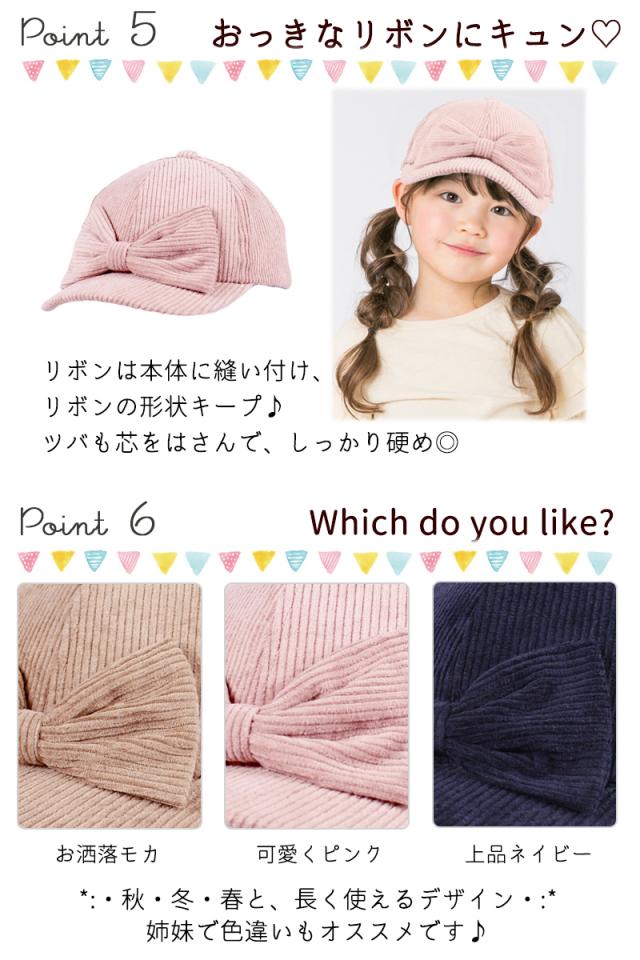【SALE!! 2750円→2200円】キッズ 帽子 女の子 UV キャップ リボン 帽子 日よけ 可愛い 秋 冬 春 コーデュロイ おしゃれ ナチュラル 《レビュー記入でメール便無料》 可愛い 子供服 幼稚園 小学生 中学生 54 56 100 110 120 S M : bianca barca ビアンカ バルカ 送料無料