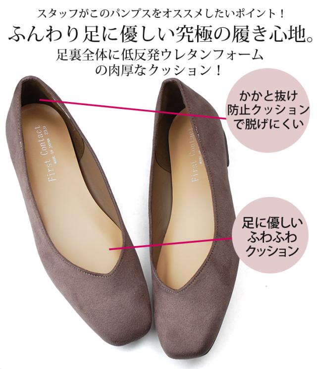 ファーストコンタクト パンプス 痛くない 疲れない 歩きやすい ローヒール スクエアトゥ 39702 レディース 日本製 靴