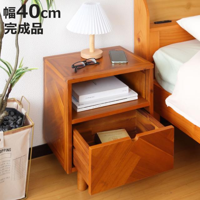ベッドサイドやリビング周りの小物を収納しておける引出し付きです。取っ手のないすっきりとしたデザインがポイント。