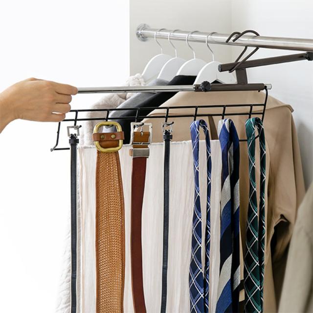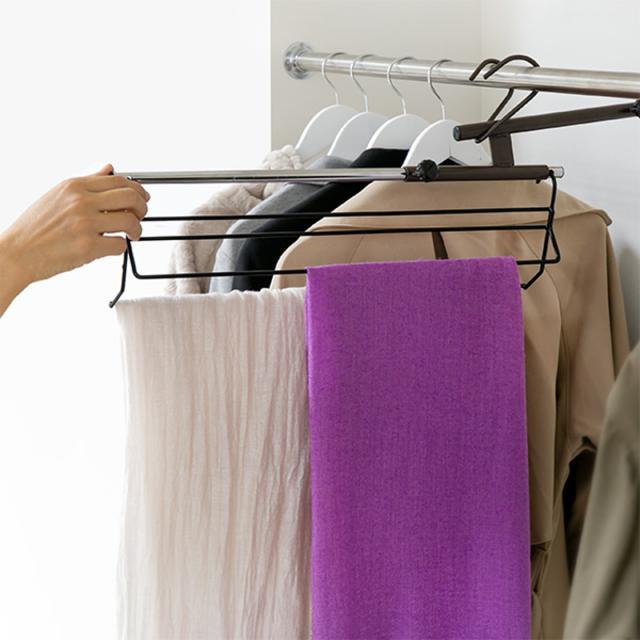 かさばって、散らかった印象に見えるストールやスカーフの収納場所が、この1本で解決できます。収納しずらいストールやスカーフ、ネクタイなどをまとめて収納できます。長さのあるものも、掛けて収納することでシワになりずらくなります。