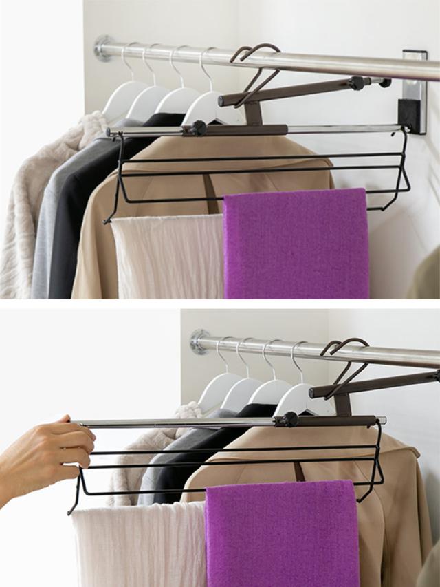 《 LH3509 ハンガーバー 吊下げ 吊るす 引き出す 賃貸 便利 整理整頓 整理 整頓 片付け ショール スヌード 掛け 洋服収納 スラックス パンツ 隙間収納 すき間収納 すき間 隙間 引っ掛け 吊って収納 吊る 衣類 洋服 クローゼット内 収納術 アイデア商品 便利グッズ 便利用品 使いやすい SC-103SS 幅51.5〜78×奥行8×高さ25.5cm 》