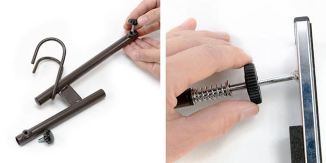 | (5)スライドパイプをクッションゴムの中央に配置 | (6)下のつまみネジを調整しながら締める |