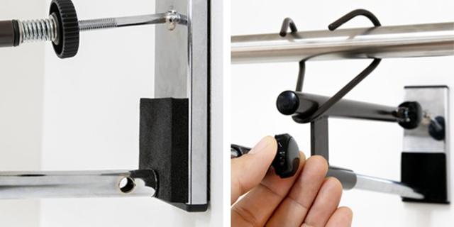 突っ張りタイプで、しっかりと固定できるので安定した使い心地です。壁を傷付けずに取り付けできます。