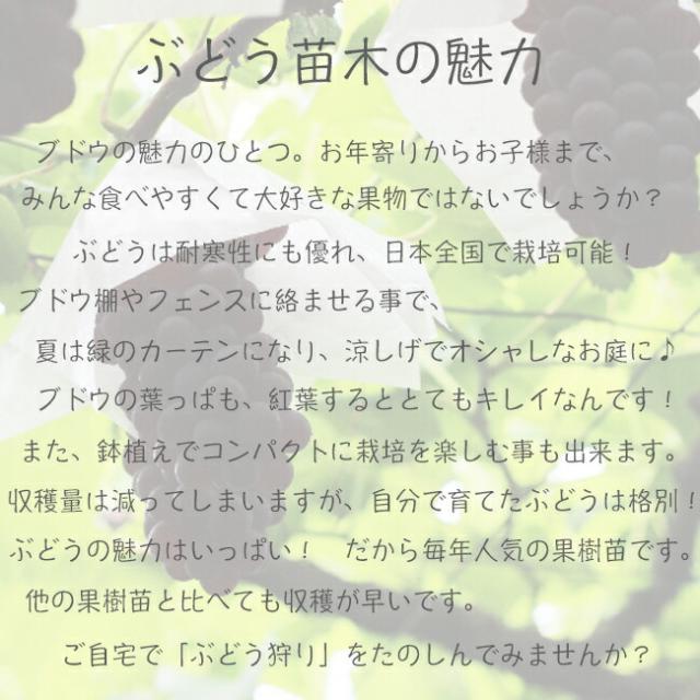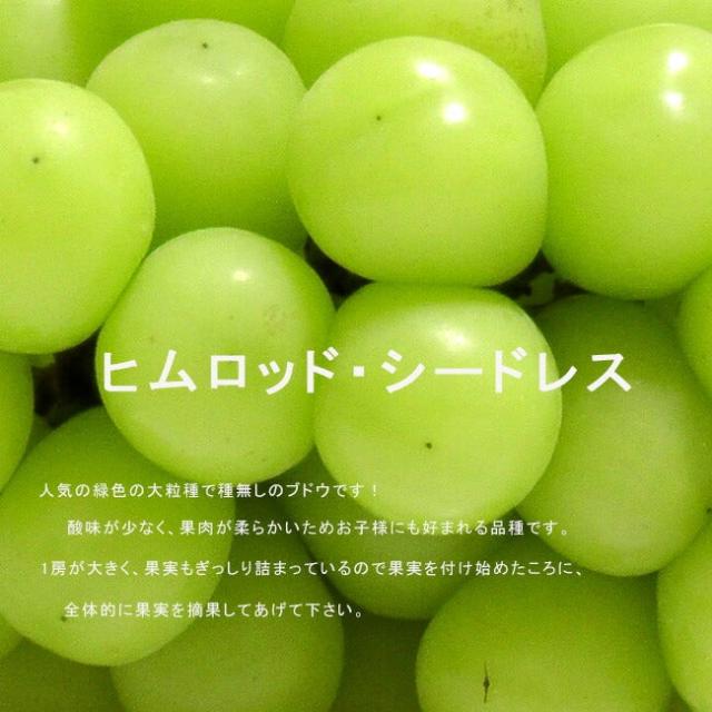 人気の緑色の小粒品種で名前の通りジベレリンしなくても種無しになります。酸味が少なく、干しブドウ向けの品種ですが果肉が柔らかいため、おいしく、お子様にも好まれる品種です。当店スタッフも家庭菜園で無農薬で15房くらい、露地栽培で収穫成功です!生で食べてもおいしいです。糖度は高く、特有のラブラスカ香があります。皮も柔らかくえぐみや渋みもなく、皮ごと食べてもおいしかったです。