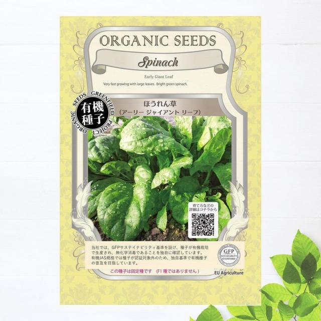 【有機種子】 ほうれん草 種 (アーリージャイアントリーフ) Sサイズ 4.0g(約280粒) 種蒔時期 2〜4月、9〜10月