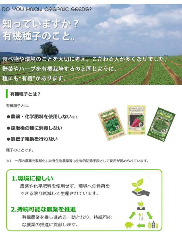 無科学農薬、無科学肥料、遺伝子組換えなしの有機のタネ
