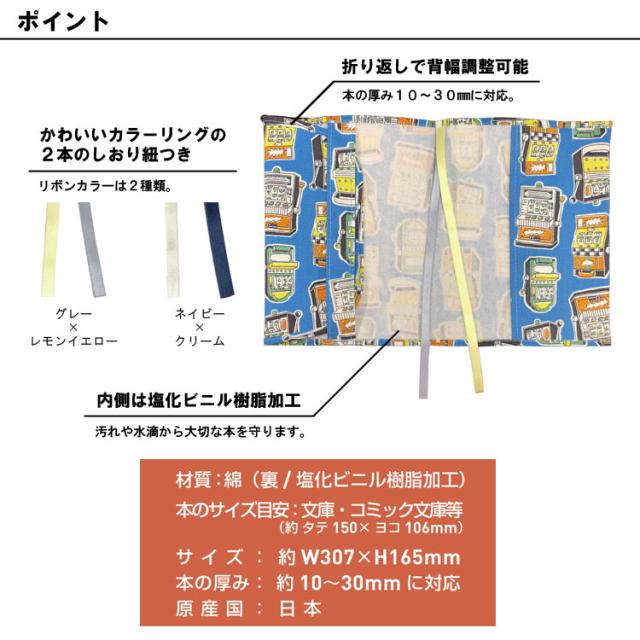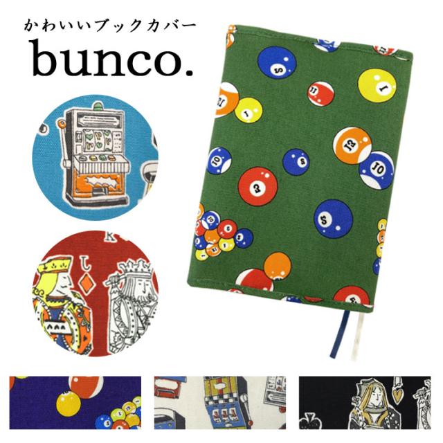 【メール便可】ブックカバー 文庫本サイズ bunco. ブンコ コンサイス 布製 ゲーム柄 ビリヤード スロット トランプ かわいい しおり付き