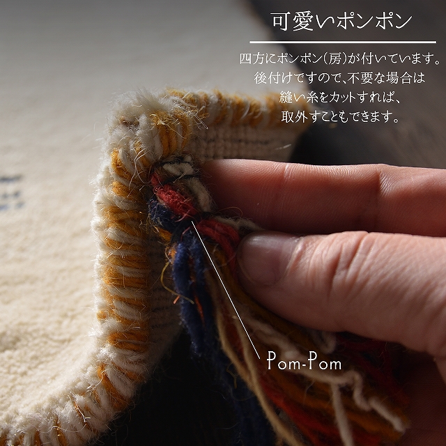 四角には可愛いポンポン(房)が付いています。