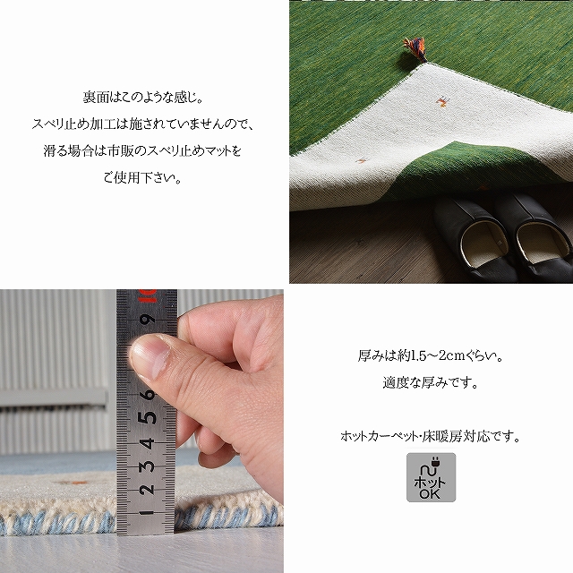 手織り商品ですので裏にスベリ止めは付いておりません。