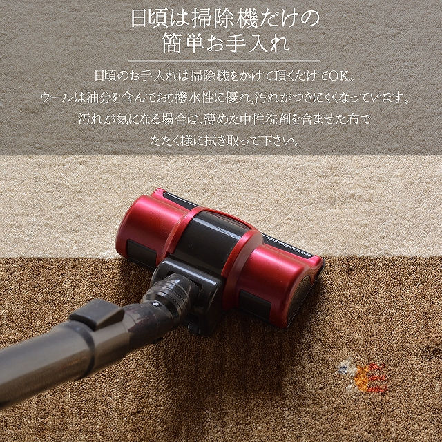 日頃のお手入れは掃除機をかけて頂くだけで十分です。(できれば毛並みの方向に)