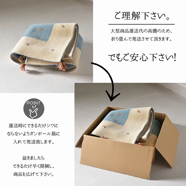 ●製法上パイルを結び付けておりませんのでパイル糸を1本だけ強く引っ張りますとパイルが抜けるおそれがありますが、通常のご使用には問題ありません。