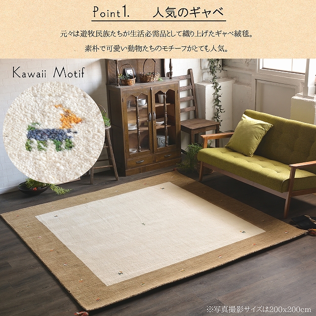 ギャッベ ギャベ ラグ オールシーズン 2畳 200x200 オリジナル 北欧 モダン アンティーク デザインラグ ふわふわ あったか 防音