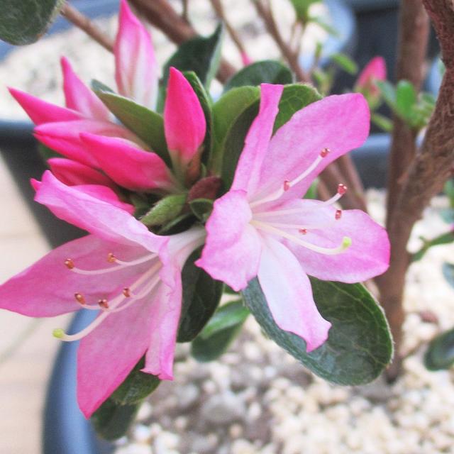 全体的にコンパクトな樹形に仕上がるため、鉢植えなどに適しています。花は小輪ですが花付きが素晴らしく良いです!耐寒性はヒラドツツジよりありますが、根腐れしやすいため注意が必要です。