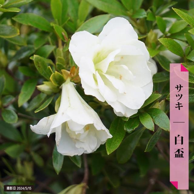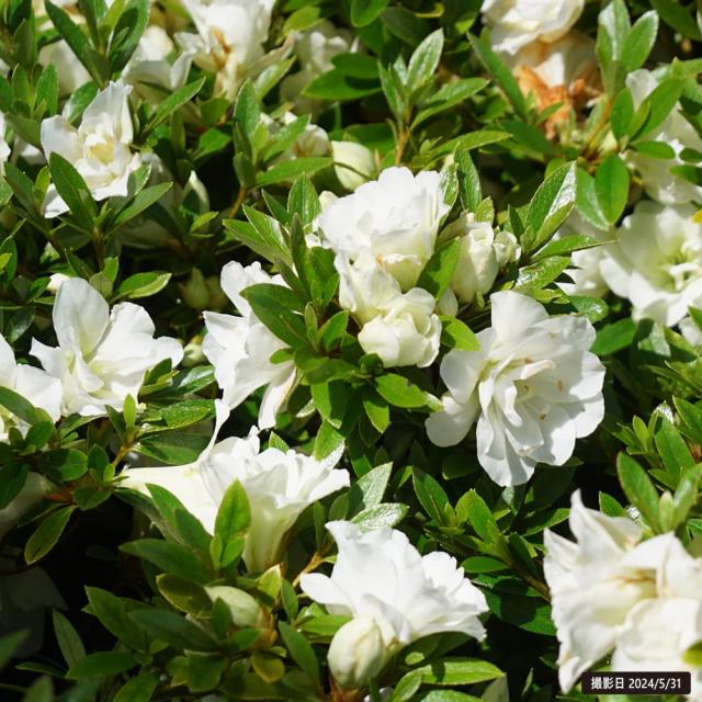 サツキの中でも珍しい八重の白花品種です。花つきがよい強健で日本全国で植栽可能です。冬の葉は紅葉しません。