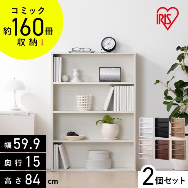 【2個セット】 本棚 スリム 大容量 おしゃれ 薄型 アイリスオーヤマ コミックラック 4段 幅約60 奥行15 高さ84 収納棚 ラック 収納 棚 カラーボックス ブックシェルフ ディスプレイラック 漫画収納 マンガ コミック マガジンラック CORKー8460R * 送料無料