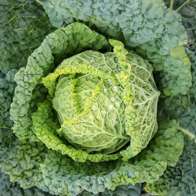 葉の縮みが美しく、鮮やかな濃緑色のサボイキャベツです。煮崩れしにくく、縮みに味が染み込むので、ロールキャベツなどの煮込み料理に最適です。霜に強い品種です。育て方について