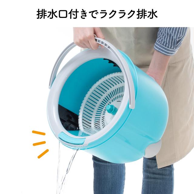回転モップ バケツセット 簡単洗浄&脱水 水拭きモップ 床掃除 床モップ[200-CD060]