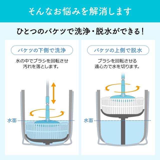 ●専用バケツでモップの洗浄と脱水を行えます。水が飛び散る心配がありません。
