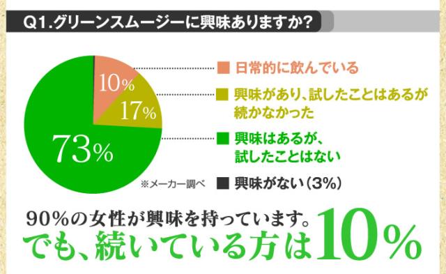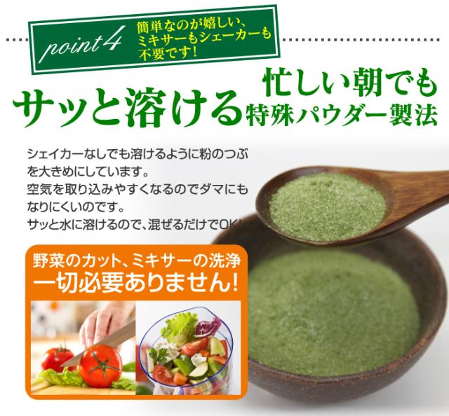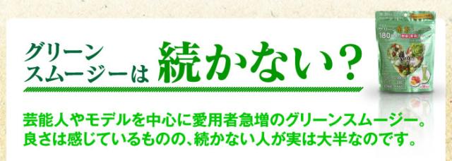 - 初めてのグリーンスムージーで味が気になっていたのですが とても溶けやすく飲みやすかったです。今までフルーツ系のを飲んでいましたが これはほんのり甘みもあって良かったです。スムージーを飲んでも私の場合ファスティングにはなりませんが体に良さそうなので続けようと思っています。
