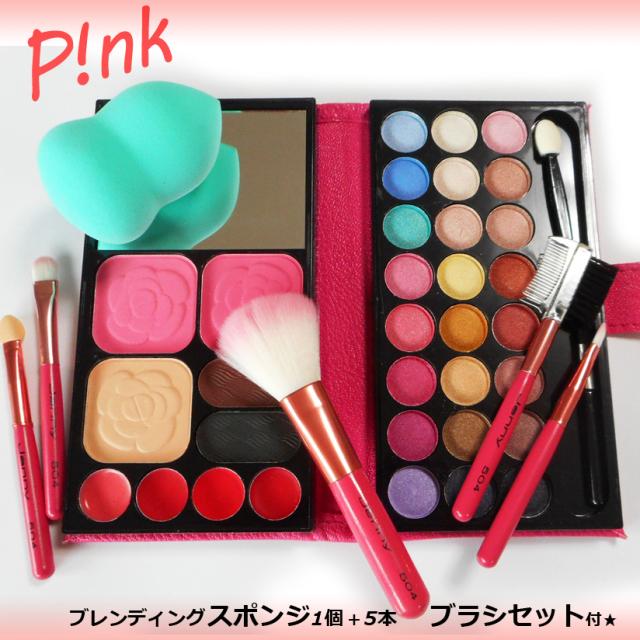 送料無料 メイクパレット 初心者 コスメ デビュー お化粧 メイク コンパクト セット コーラルピンク さくらピンク クリスマス コフレ カラフル アイシャドウ チーク フェイスカラー 口紅 リップ アイブロウ メイクブラシ付 小学生 中学生 プレゼント 入学祝 入社祝 成人式