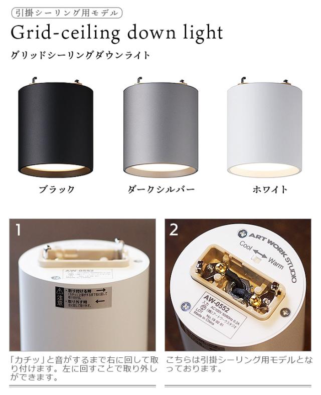 手の平サイズのコンパクト設計ながら100W形電球相当の高機能LEDで驚くほどの明るさの確保を実現したダウンライト「Grid」シリーズ。ライティングレール専用モデルと引掛けシーリング専用の2モデルをご用意しました。どちらのモデルにも光源の色調を柔らかな『Warm(3000K)』とクッキリした明かりの『Cool(5000K)』に切り替え出来る背面スイッチを装備しています。玄関やトイレなどの小スペースから開放的な広めのスペースまで幅広く対応します。ダウンライト本体がシンプルでコンパクトなデザインとなっているのでどんな部屋につけても、圧迫感がなくスマートな印象を与えます。もちろん、複数並べてつけても自然にお部屋に馴染みます。どちらのモデルもブラック、ダークシルバー、ホワイトの3色からお選びいただけます。