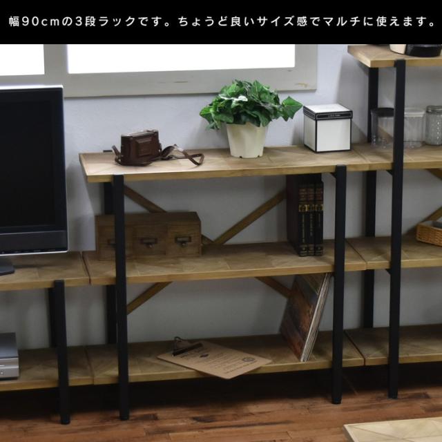 ラック 収納ラック 3段 幅90cm キッチンラック リビングラック テレビラック テレビ台 テレビボード KALEIDO 男前家具(代引不可)【送料無