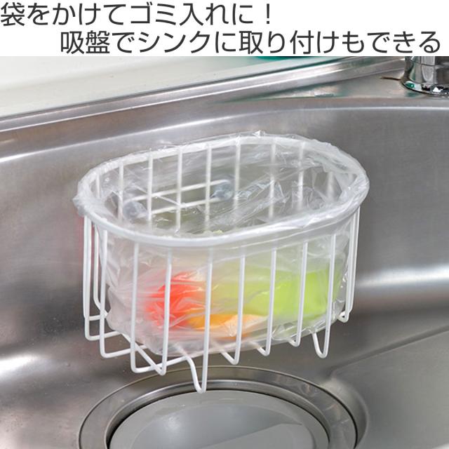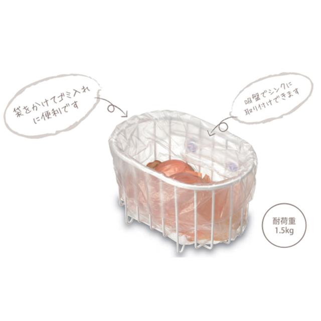 袋をかけて調理の際に出るゴミ入れに最適なコーナーラックです。吸盤付きなのでシンクに取り付けてお使いいただけます。シンク内だけでなく調理台や卓上に置いても使えます。