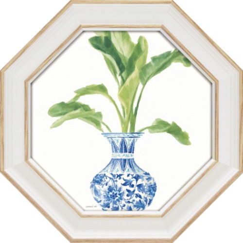 ダンフイ・ナイ 静物画 八角 ミニゲル アートフレーム パーム シノワズリ ホワイト1 DN-02555 取寄品