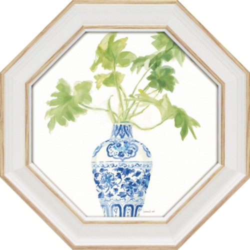 ダンフイ・ナイ 静物画 八角 ミニゲル アートフレーム パーム シノワズリ ホワイト3 DN-02557 取寄品