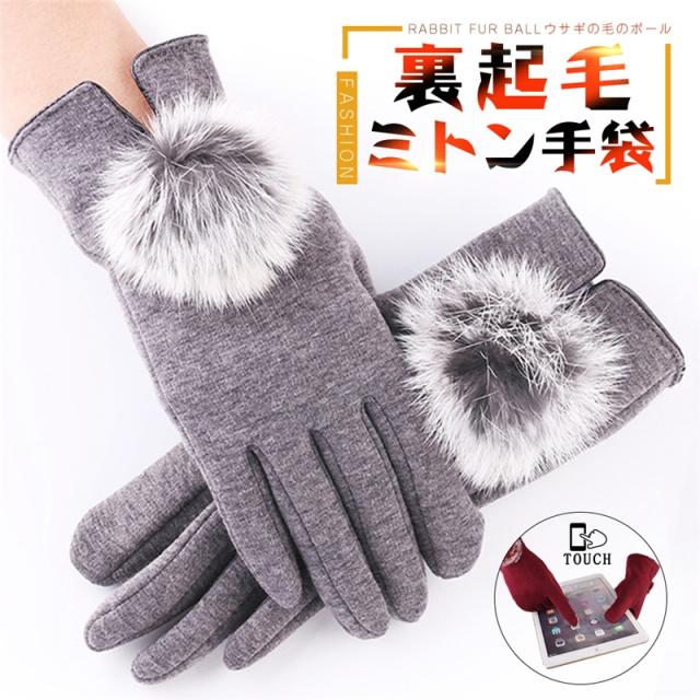 手袋 グローブ 裏起毛 暖かい 女性手袋 防寒手袋 ウサギの毛玉付き タッチパネル対応 レディース手袋 防寒グッズ 女性用 柔軟 あったか