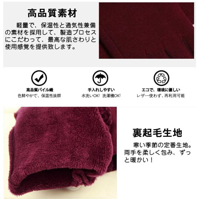 手袋 グローブ 裏起毛 暖かい 女性手袋 防寒手袋 防風 寒さ対策グッズ アウトドア用 女子力アップ カジュアル 五本指スマホ対応 冬用