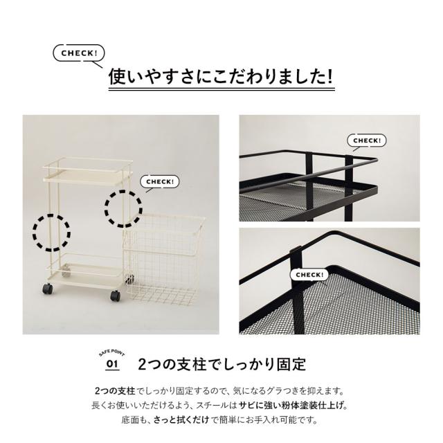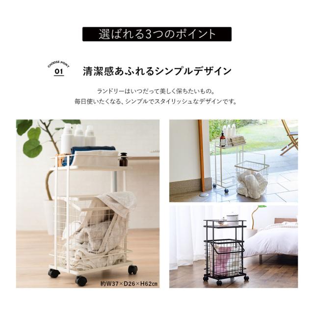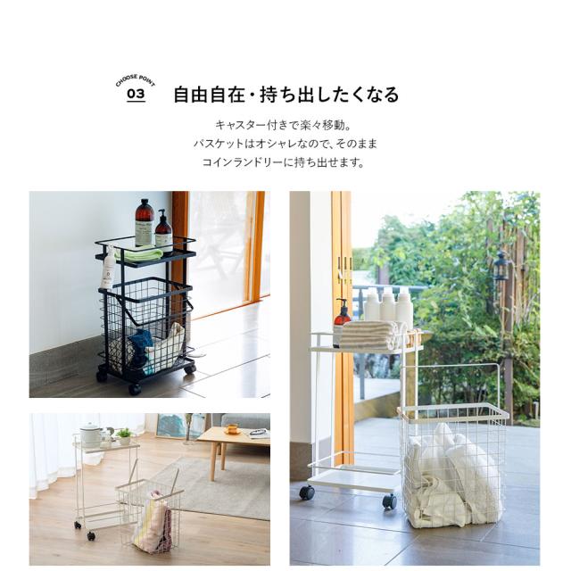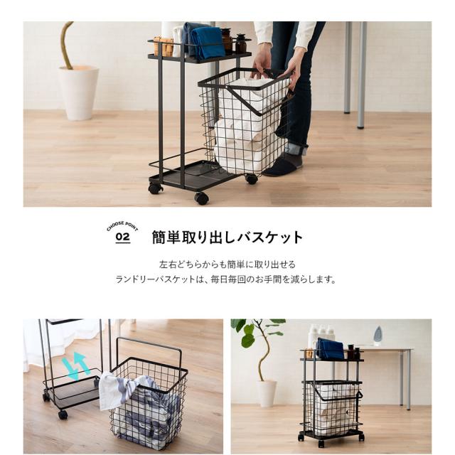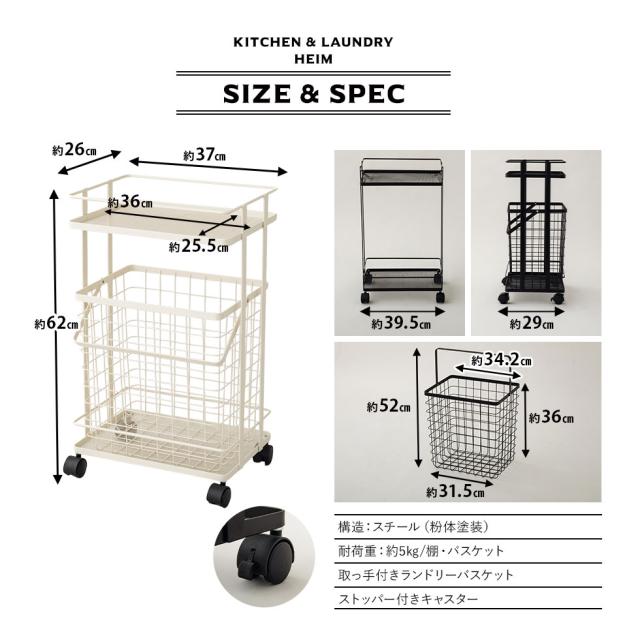 | サイズ | 全体(キャスター含む):約幅39.5×奥行29×高さ62cm 棚:約幅36×奥行25.5cm バスケット:約幅31.5×奥行25×高さ36cm (約1.1kg) |