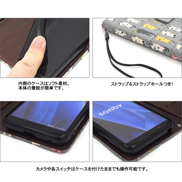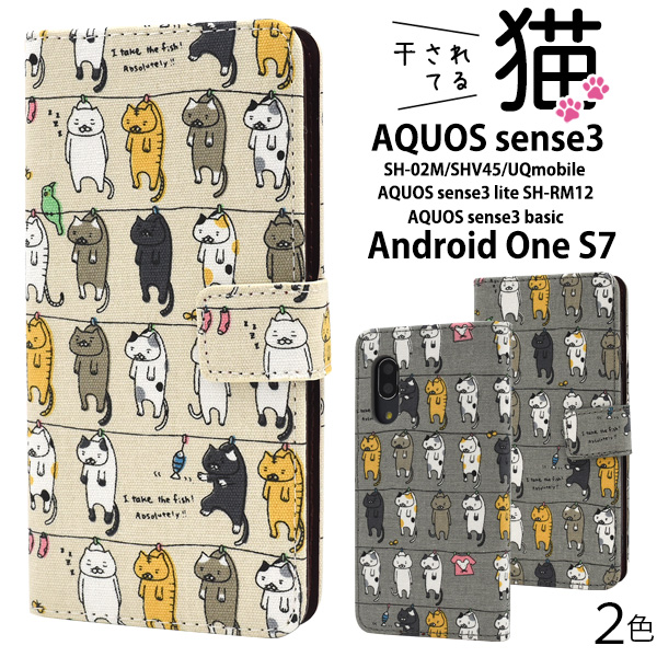 スマホケース 干されてる猫 手帳型ケース AQUOS sense3 SH-02M SHV45 SH-M12 UQmobile AQUOS sense3 lite SH-RM12 AQUOS sense3 basic SHV48 Android One S7用 シンプル ねこ 洗濯 横開き 保護カバー アクオスセンス3 uqモバイル 楽天モバイル