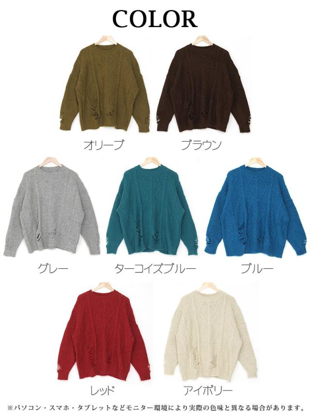 ニット レディース ニットレディース セーター トップス レディーストップス レディースファッション カラバリ ダメージ ニット