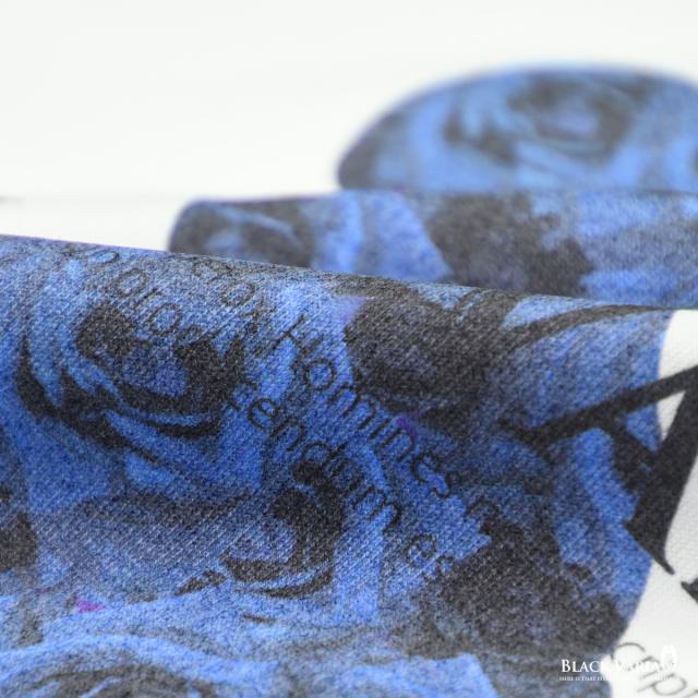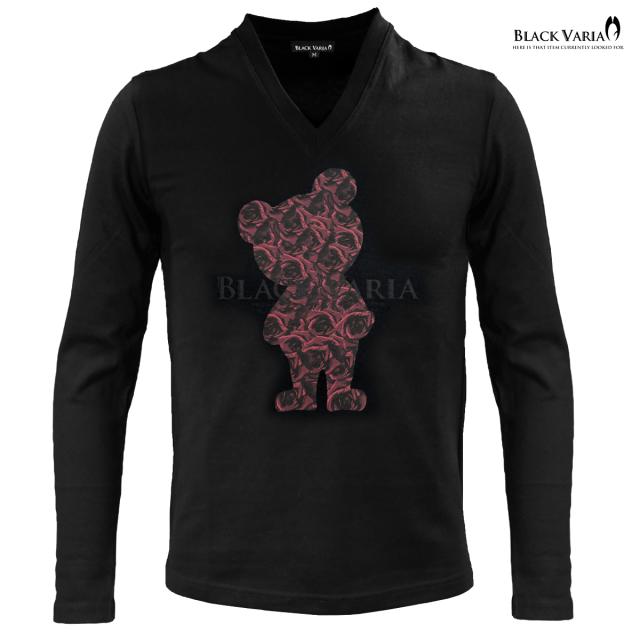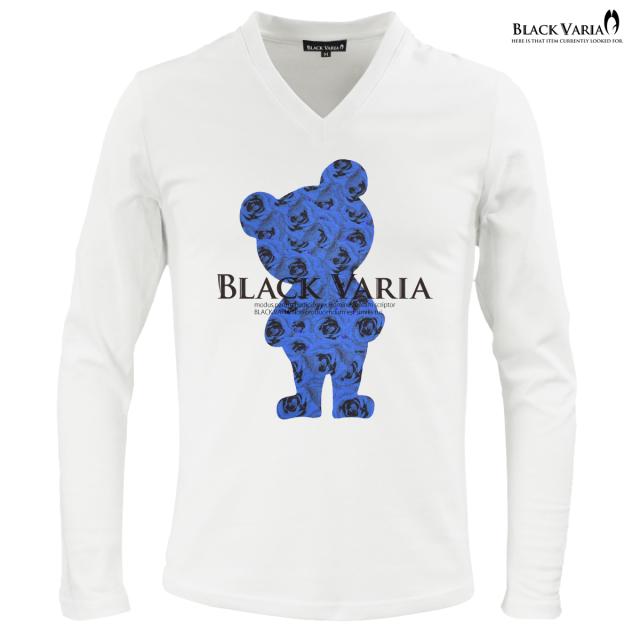 メール便可/1枚まで Tシャツ 長袖 Vネック 熊 クマ アニマル 動物 バラ 花柄 薔薇 メンズ(ホワイト白ブルー青) zkk068ls