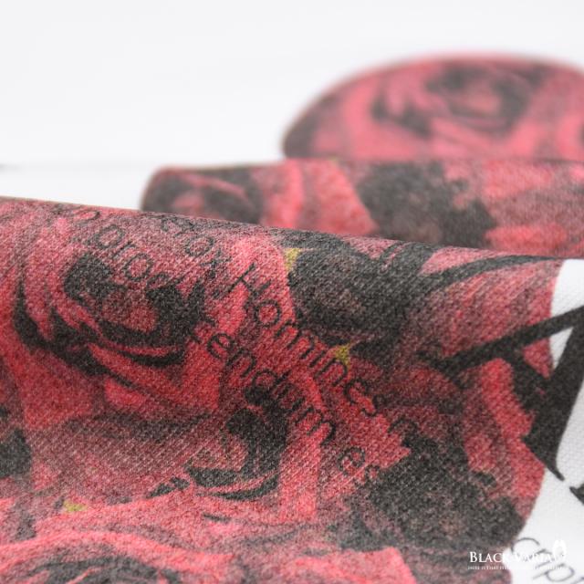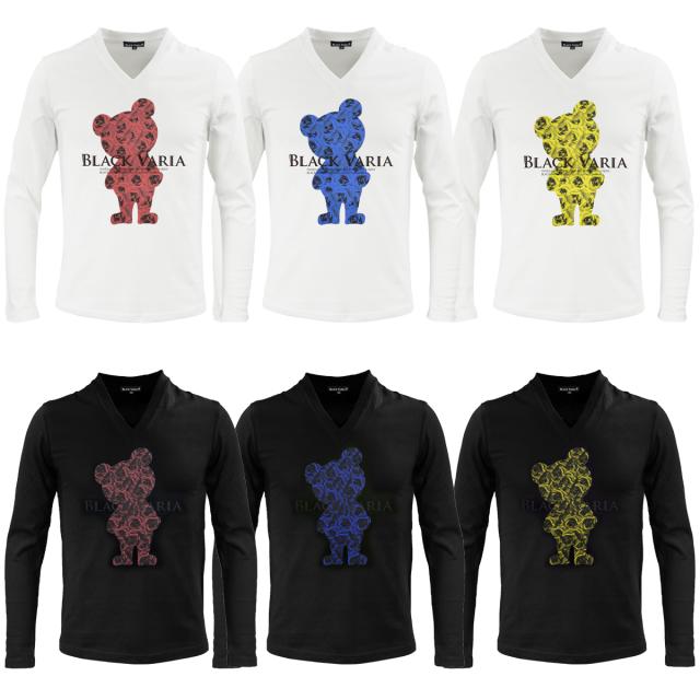 メール便可/1枚まで Tシャツ 長袖 Vネック 熊 クマ アニマル 動物 バラ 花柄 薔薇 メンズ(ホワイト白レッド赤) zkk068ls