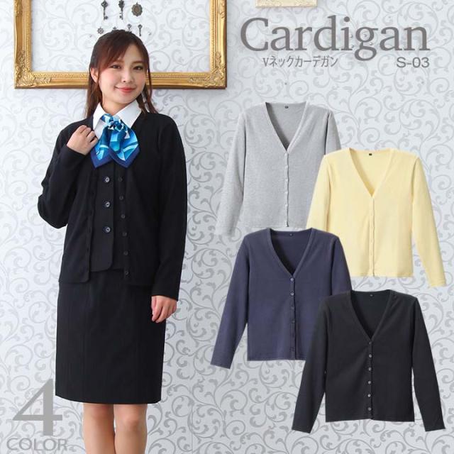 カーディガン レギュラー丈 Vネックカーデガン S-03 事務 医療 カジュアル 抗ピル長袖カーデガン 事務カーデガン レディース 家庭洗濯可能 ディーフェイズ