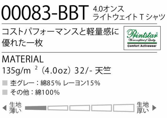 ■トムスブランド 00083-BBT 4.0オンス ライトウェイト Tシャツ