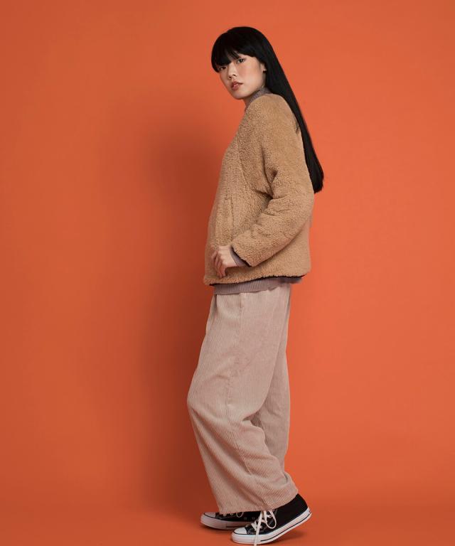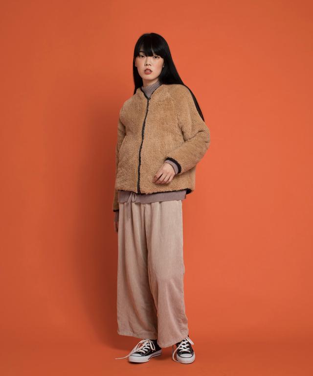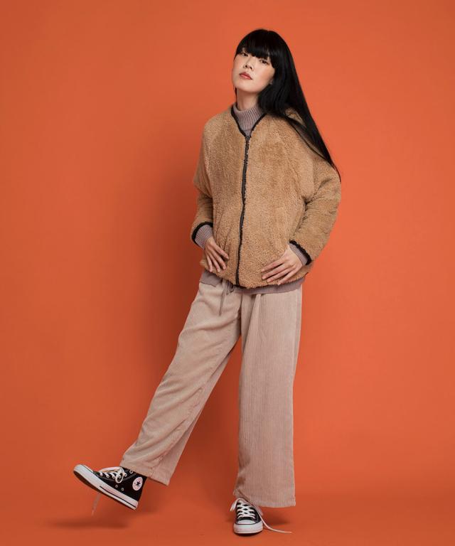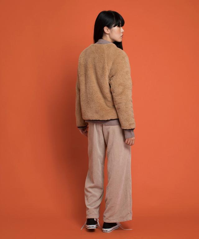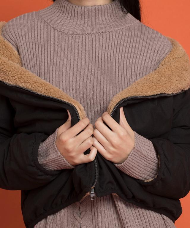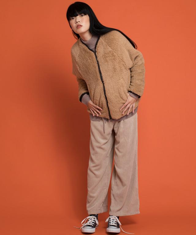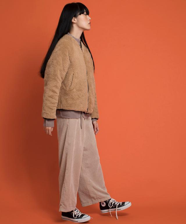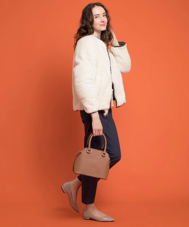 リバーシブルボアジャケット ボア ブルゾン ノーカラー ジャケット レディース アウター 秋 冬 リバーシブル ボア 2WAY ボリューム カジュアル 防寒 両面 表裏 もこもこ トレンド