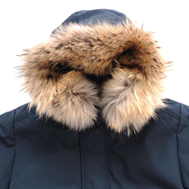 フード廻りのフィンラクーン(タヌキ)の毛皮は繊細ながらボリュームがあり、取り外すことも可能です。