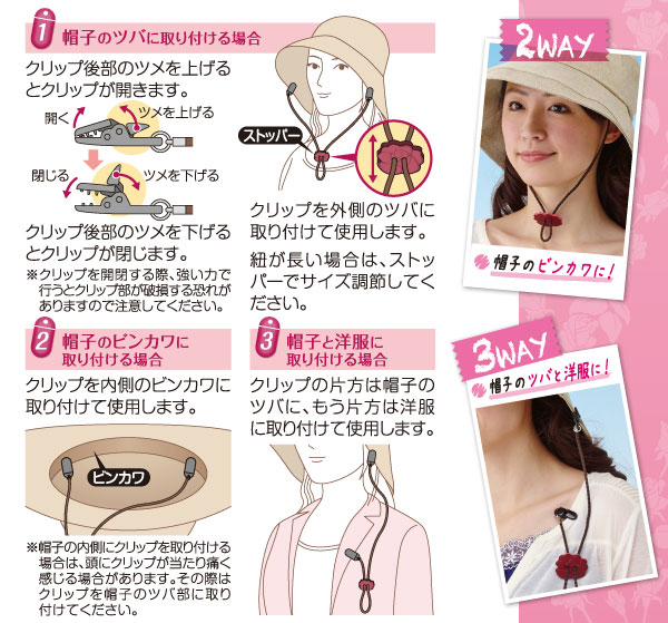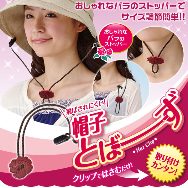 風の強い日や自転車でも安心!帽子が飛ばないクリップ!