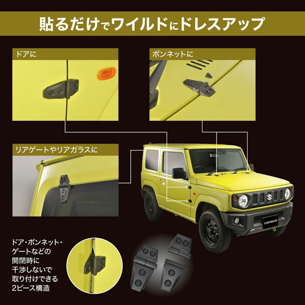 カーメイト アウターヒンジ ダミー 樹脂製 ジープ風 ドア・ボンネット・ゲートなどに ジムニー ハスラー N-VAN スペーシアギア DZ529