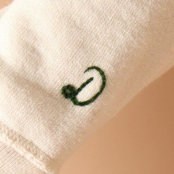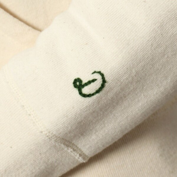 スウェットを生産する際に一般的に使用される機械と比較すると、最高でも5%程度しか生産できない、貴重な吊編み機を使用して作られています。