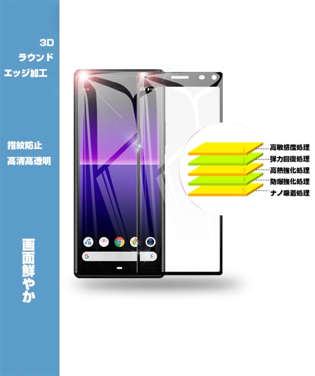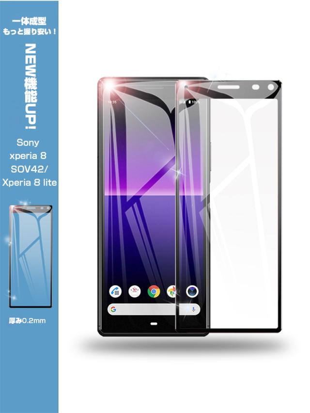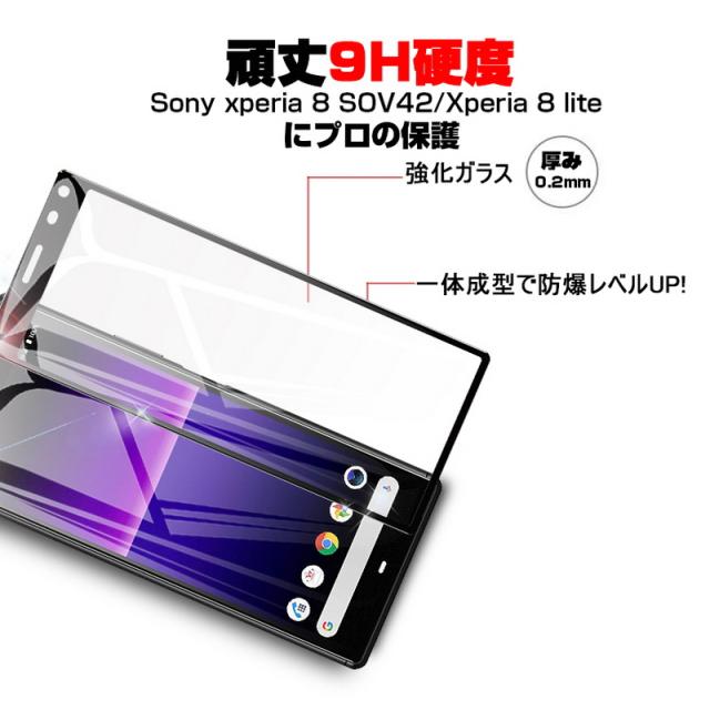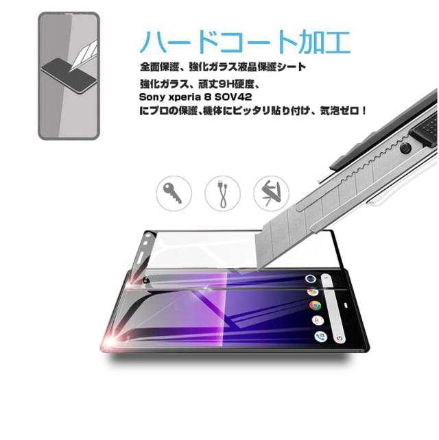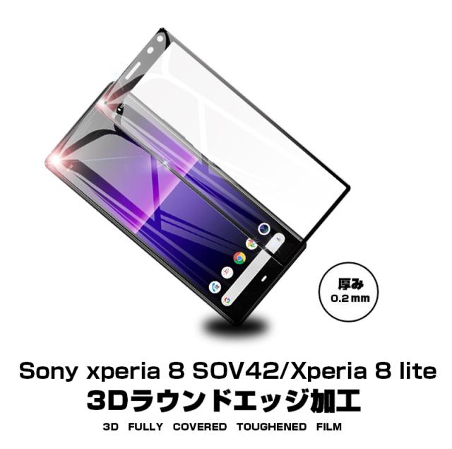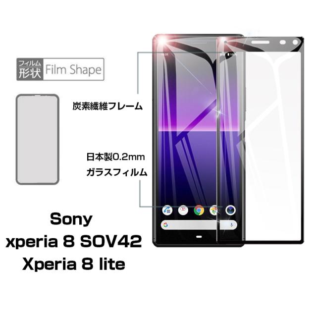 【2枚セット】Xperia 8 SOV42 / 902SO ガラスフィルム Xperia 8 Lite SOV44 液晶保護 ガラスシート スマホフィルム 3D ソフトフレーム
