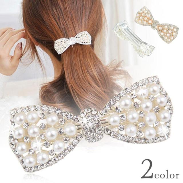 バレッタ 髪飾り リボンモチーフ ヘアアクセサリー まとめ髪 ヘアアレンジ ロングヘア パール風 可愛い おしゃれ 清楚 綺麗