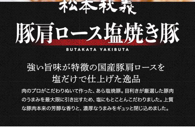 三代目肉工房 松本秋義 豚肩ロース 塩焼豚 300g 国産豚肩ロース使用 食品 豚肉 焼き豚 チャーシュー