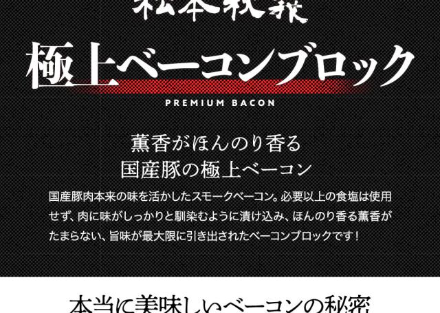 極上ベーコン ブロック 300g 【三代目肉工房 松本秋義】国産豚バラ肉使用