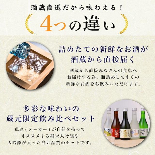 蔵元限定の純米大吟醸が入った300ml飲み比べ3本セットです。3種類すべてタイプの違う日本酒の飲み比べセットです。