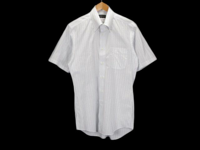 【中古】ランバン LANVIN シャツ ストライプ ブロード 半袖 38 水色 ブルー 白 ホワイト メンズ